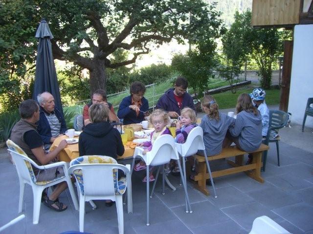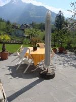 Der Sitzplatz läd ein zum Entspannen, Berge genießen und gemütlich Kaffeetrinken, Frühstücken,... oder Grillen. Der Platz ist im vorderen Teil gepflastert und hinten ist ein Stück mit Rasen.